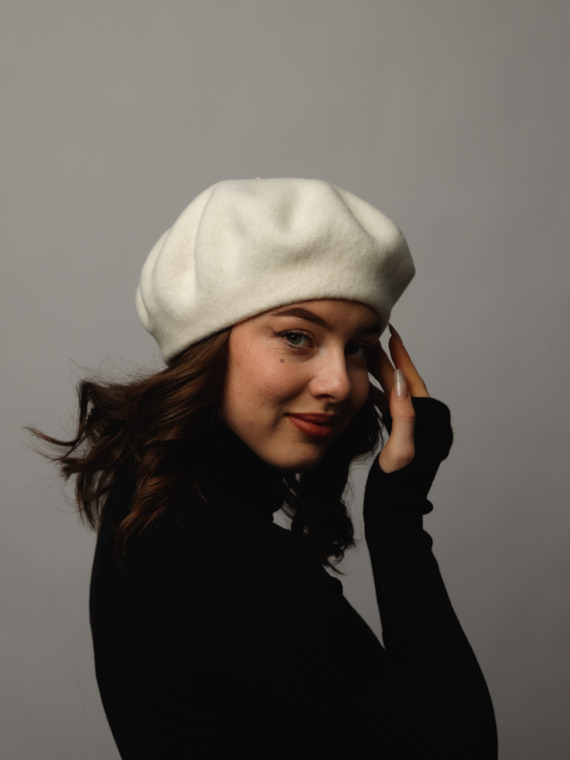 Этот берет, выполненный из 100% натуральной шерсти, станет твоим верным спутником в прохладные весенние и осенние дни.